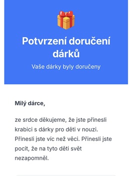 Na této akci jste přispěli částkou 5500,-Kč na již zakoupené dárky pro děti z projektu Krabice od bot.