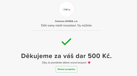 A na konec jsme zaslali 500,-Kč na projekt Děti samy násilí nezastaví. Vy můžete.